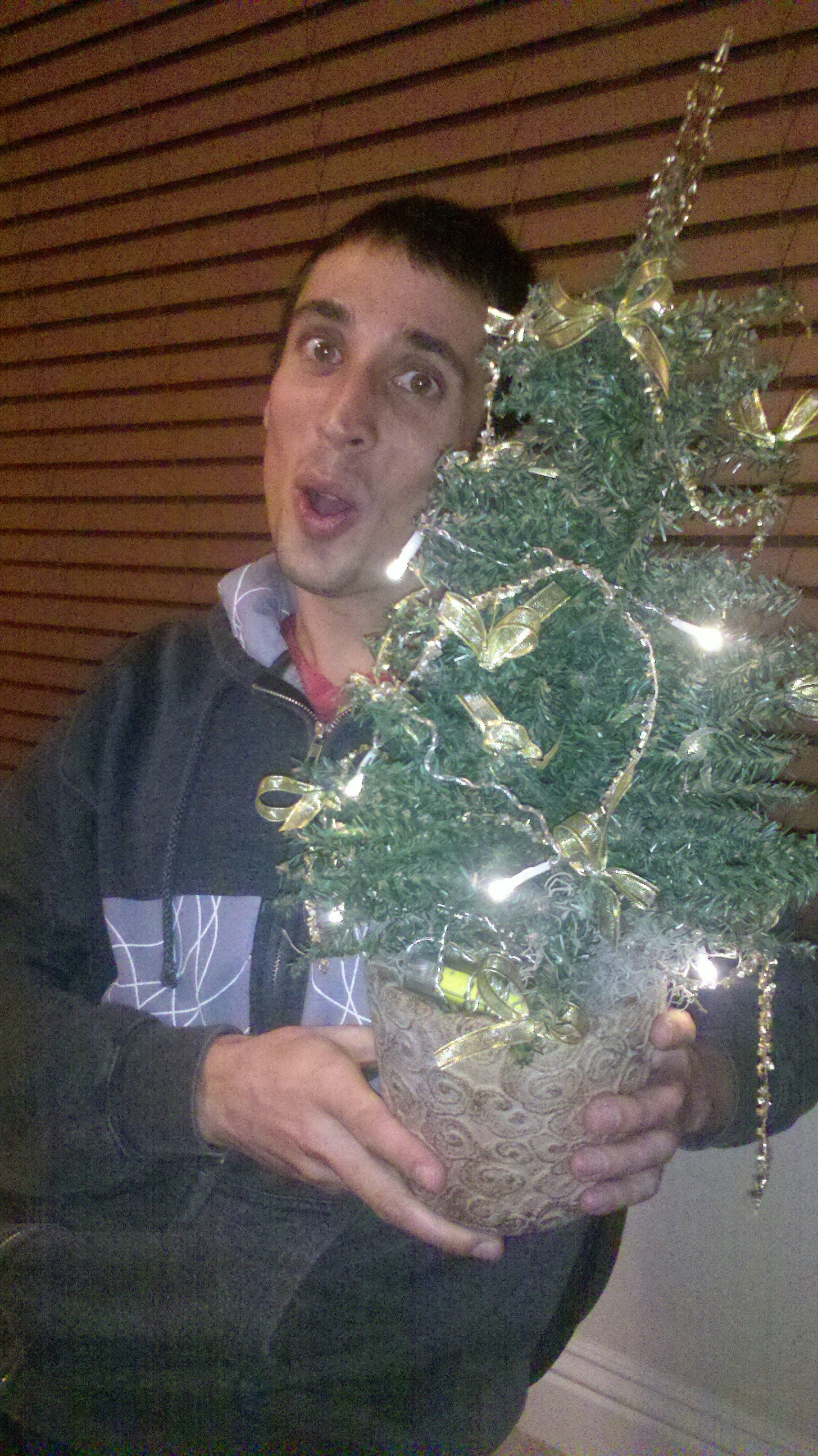 • Thanks to John & Joyce Wagner for helping to keep the Team Tyler Christmas Spirit in full-effect with a lovely little tree that is illuminating my living room as I type.  (That’s me doing my best “ho ho ho” with the tree)